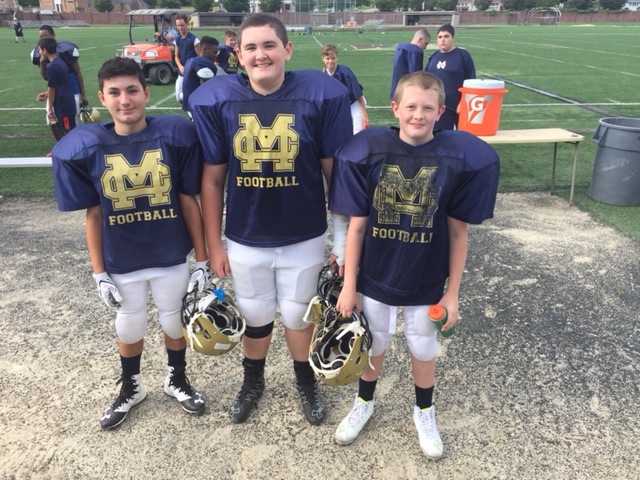 OLA Class of 2015 graduates, Anthony, Conor and James, in Malden Frosh Football scrimmage: